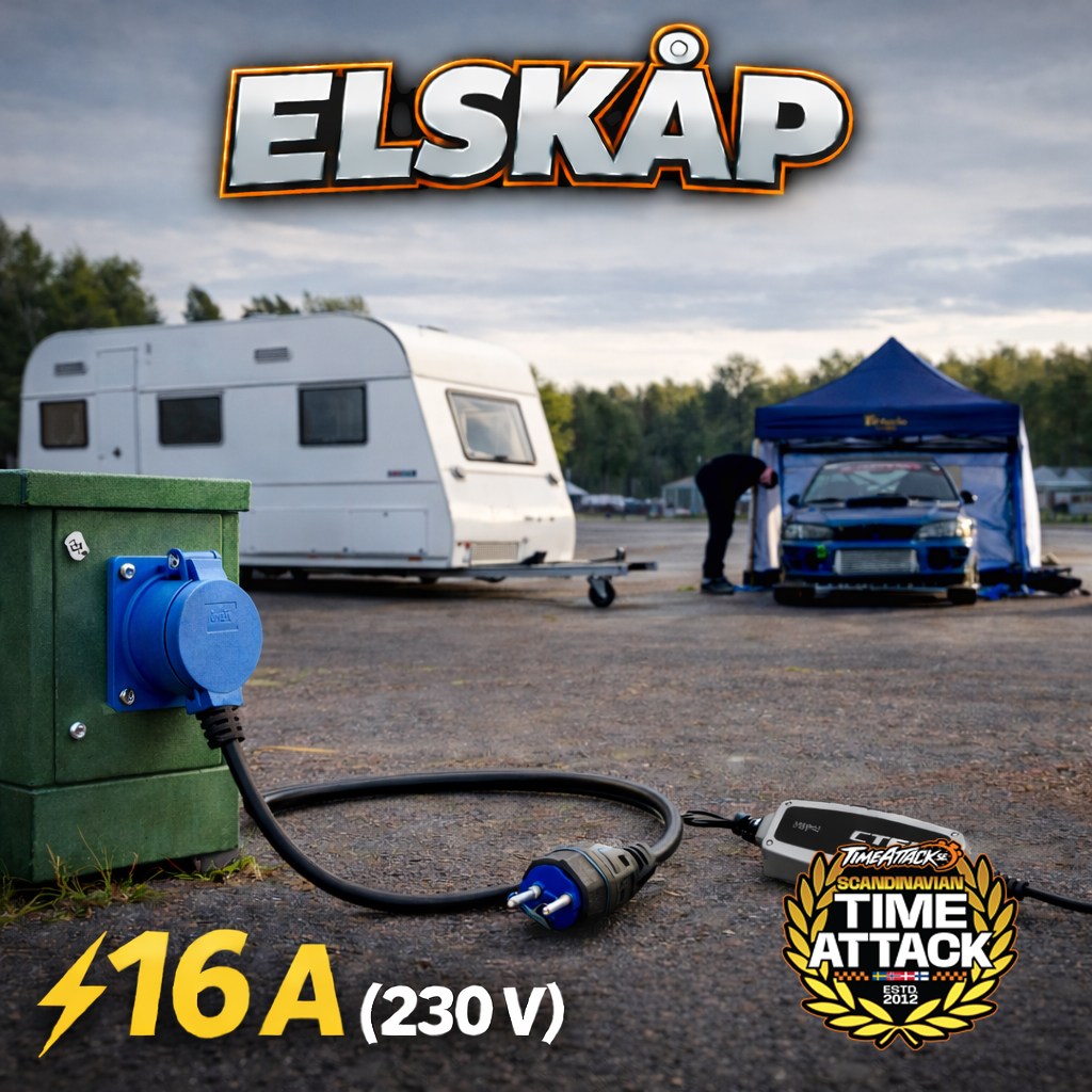 Boka tillgång till 16 A eluttag i din depåplats för att ansluta t.ex. husvagn, husbil eller annan utrustning under dagen eller hela helgen. Perfekt för belysning, laddning, kylbox eller mindre elapparater.