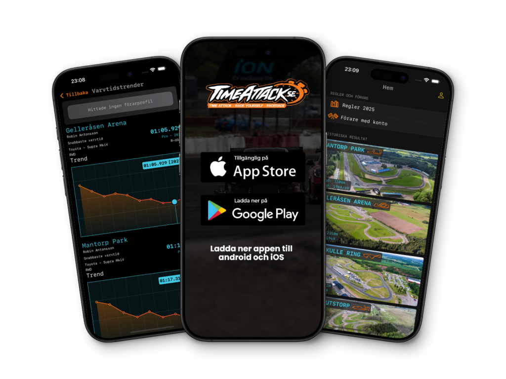 Upptäck TIMEATTACK.SE nya app! Följ statistik, resultat och varvtider direkt i din smartphone. Tillgänglig för både Android och iOS.