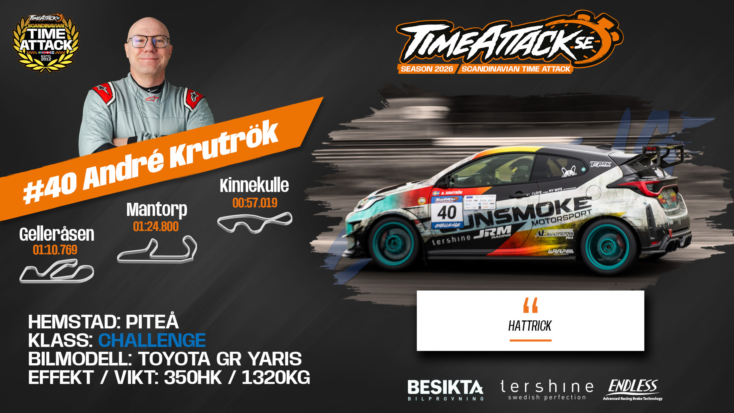 Fokuserad, målinriktad och noggrann. André siktar på att bli den första att ta hem två Challenge-titlar i rad – en prestation som kräver både disciplin och målmedvetenhet. Med starkt fokus och ett tydligt driv är han en konkurrent att räkna med.
