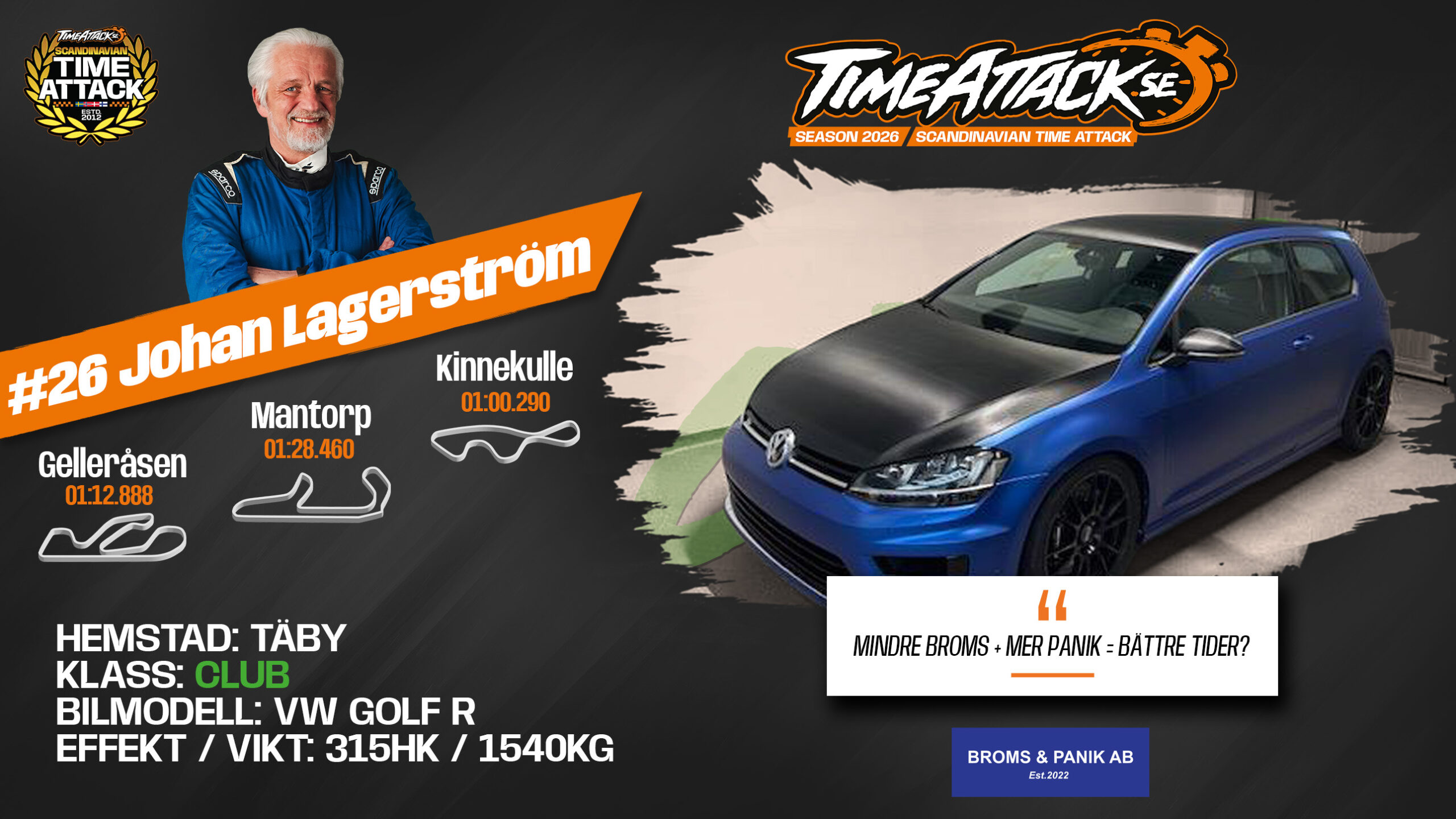 Inför 2026 års säsong så satsar han i klassen Club med en Volkswagen Golf R.