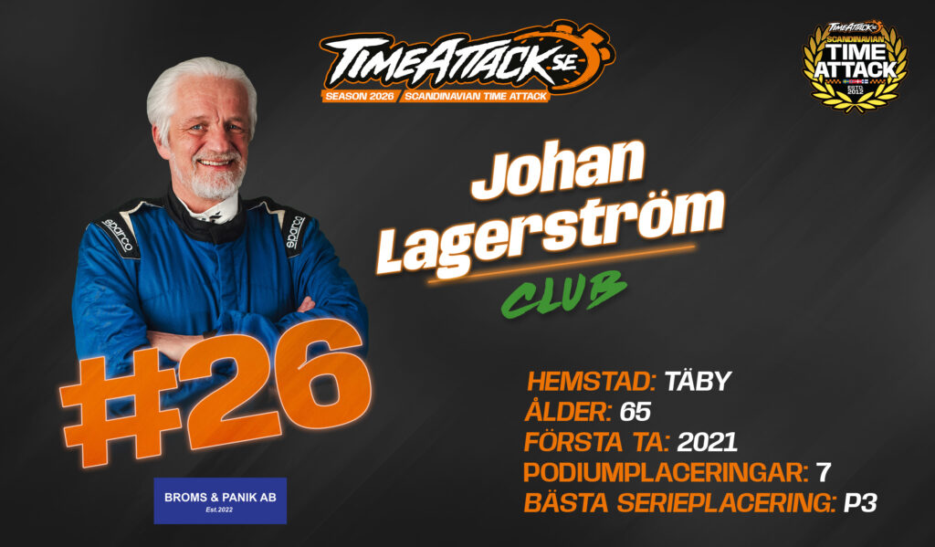 Johan kom in i TimeAttack-världen mer eller mindre av en slump – men trivdes direkt och blev kvar. Efter flera försök utom tävlan med olika bilar gjorde han sin första riktiga säsong i Challenge 2022. I år fortsätter han tävla i Pro-klassen, denna gång med samma bil som förra året – en Porsche 992 GT3. Han stöttar även två andra förare som sponsor.