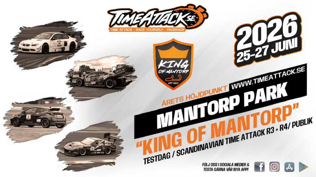 Tervetuloa Mantorp Parkiin viikonloppuna 26.–28. kesäkuuta (to–la), Time Attack & Test Day -tapahtumaan, jossa on mukana Pohjois-Euroopan arvostetuin kierrosaikafanaatikoiden kilpailu: "King of Mantorp" 2026.
